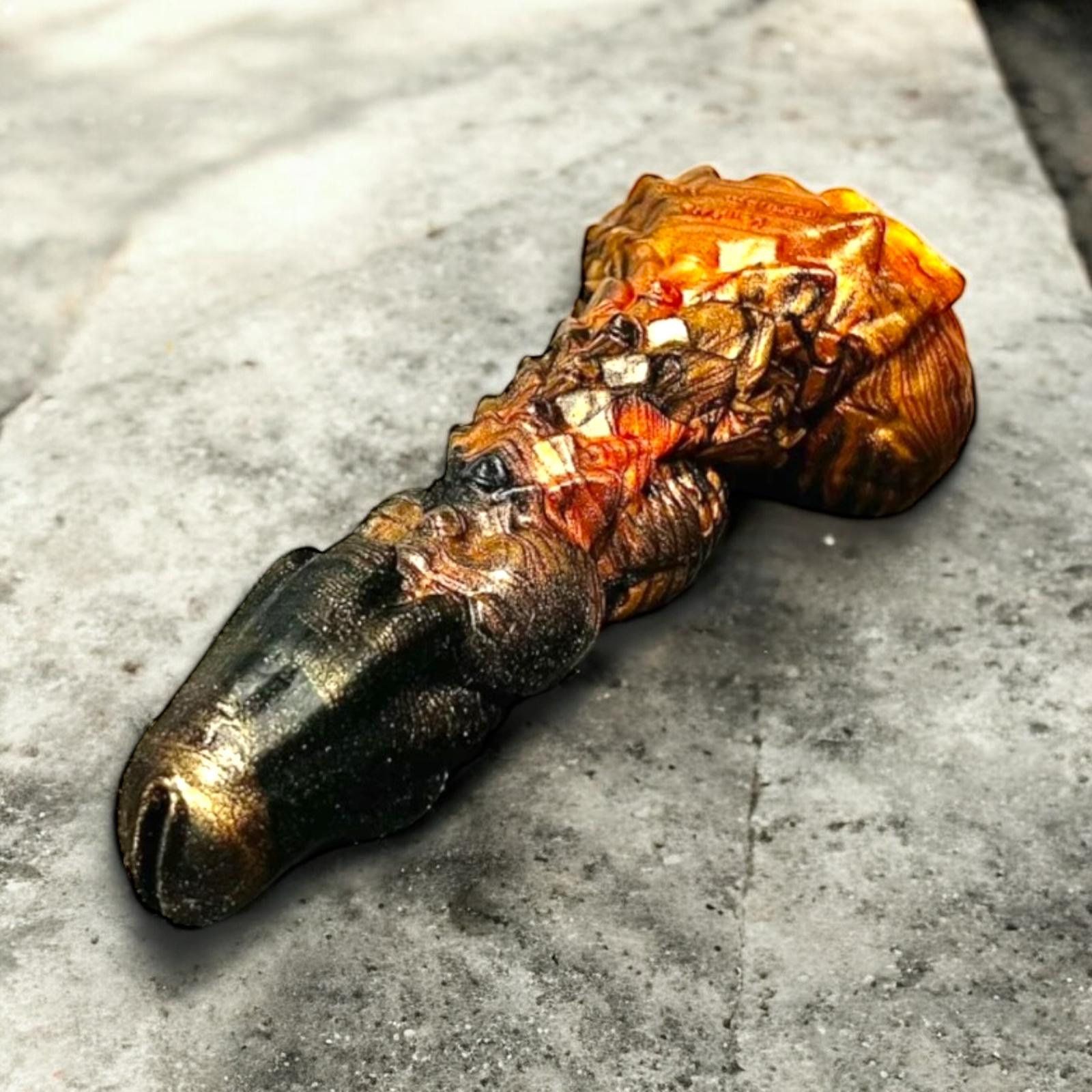 A partir de 79,00€Laissez vous réchauffer par le feu du dragon… Découvrez notre interprétation du pénis ce monstre légendaire : ses écailles larges et saillantes, ses grosses variations de diamètre et son gland à pointes ne laisserons personne indifférent… Avec ce gode vous serez beaucoup plus stimulée à taille équivalente qu’avec un jouet lisse. Enfin optez pour la couleur « Dark Bronze » afin de lui donner un coté encore plus reptilien…